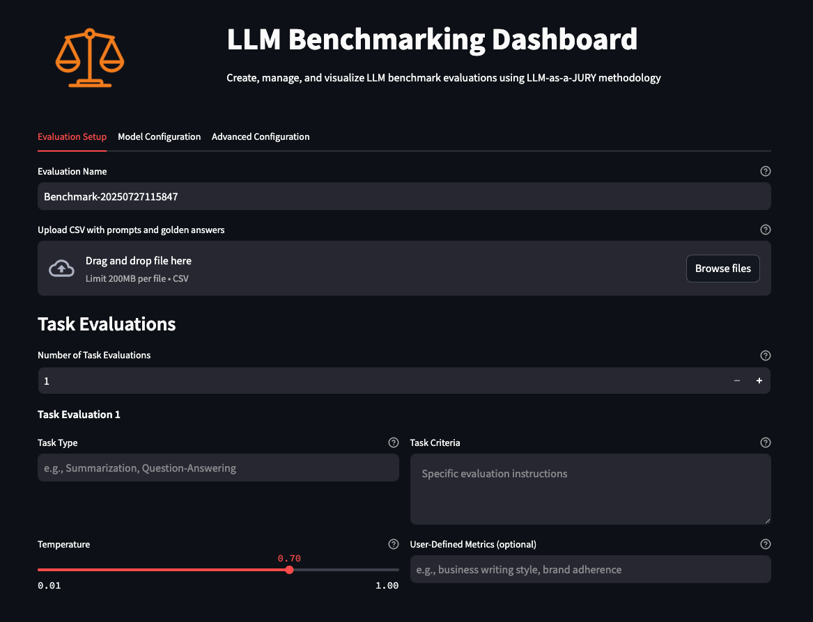 This is where you specify the CSV file with sample prompts, task type, and task criteria according to your needs.